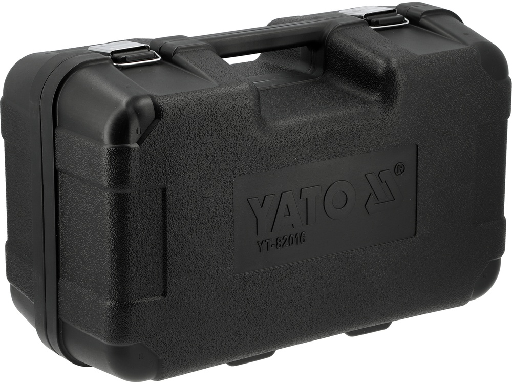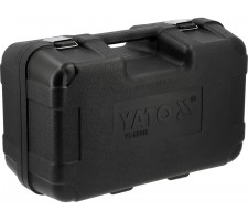 The nearly fully enclosed guard with a connection for a vacuum cleaner (e.g., YT-85717 or YT-85716) effectively removes debris during cutting, minimizing dust generation. The motor is equipped with a thermal switch, and the rotor and stator are made of high-quality copper. The bearings are protected against dust ingress, enhancing durability and ensuring reliability during intensive use.