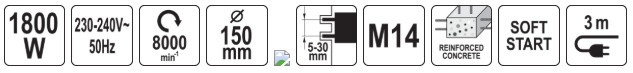 1800 W griovelių pjovimo įrankis | 150 mm diskai | su dulkių nusiurbimu ir reguliuojamu gyliu iki 40 mm (YT-82016)