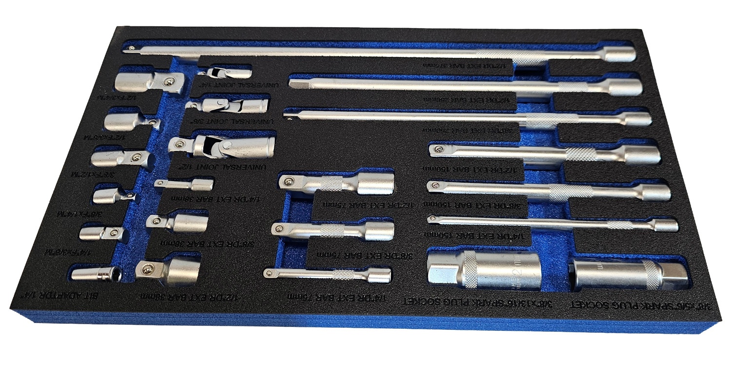 Size:3/8x5/8" ,3/8x13/16" Spark plug socket,1/4" 38mm,75mm.150mm,3/8"38mm, 75mm,150mm,250mm ,1/2"38mm,75mm,150mm,250mm,375mm Extension bar,1/2" ,3/8",1/4" Universal joint, 1/4" Bit adaptor,1/4”F-3/8”M Drive, 3/8”F-1/4”M Drive, 3/8”F-1/2”M Drive, 1/2”F-3/8”M, 1/2”F-3/4”M Drive Adapters.