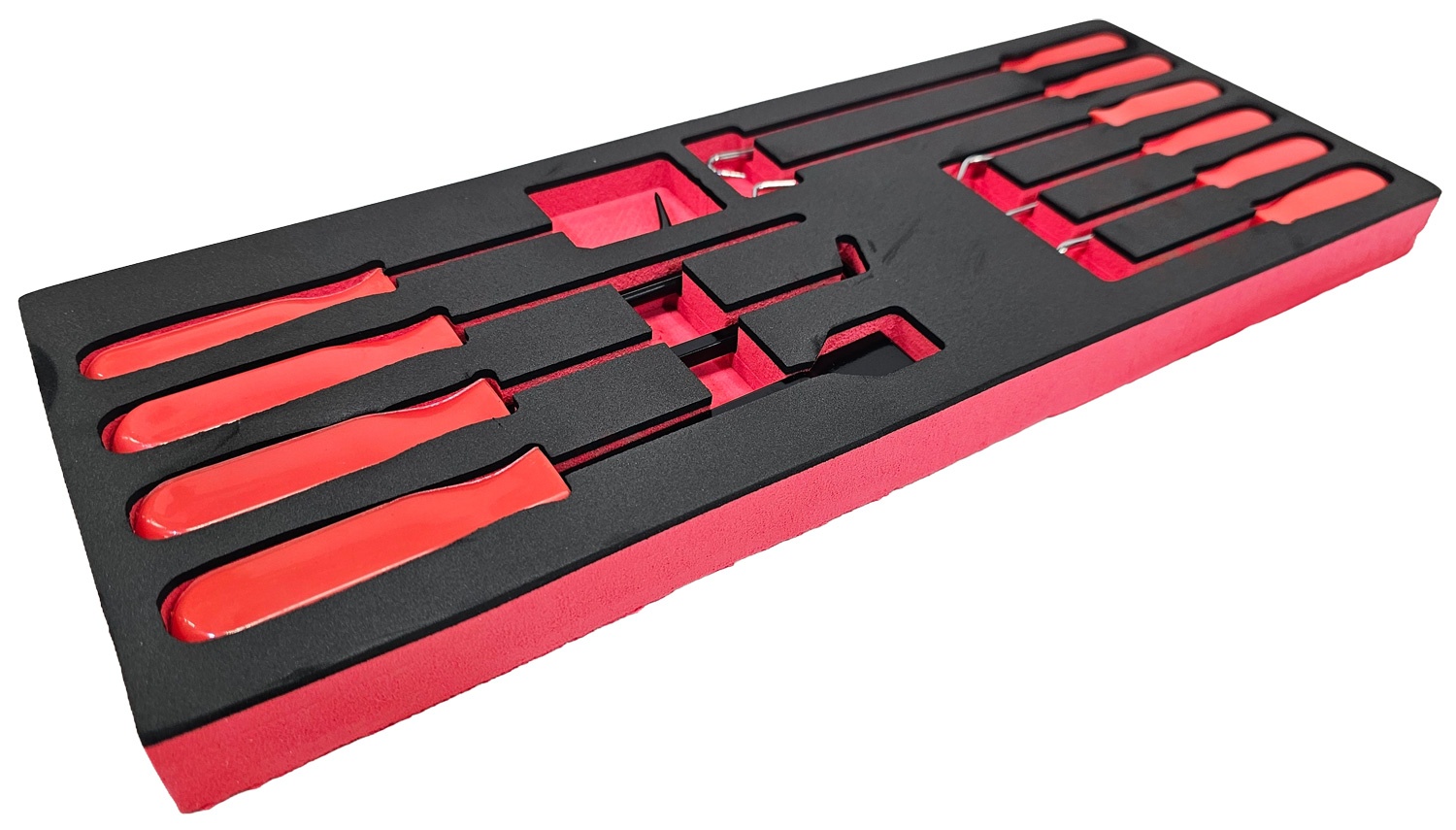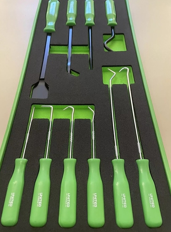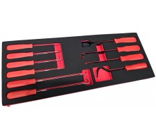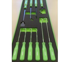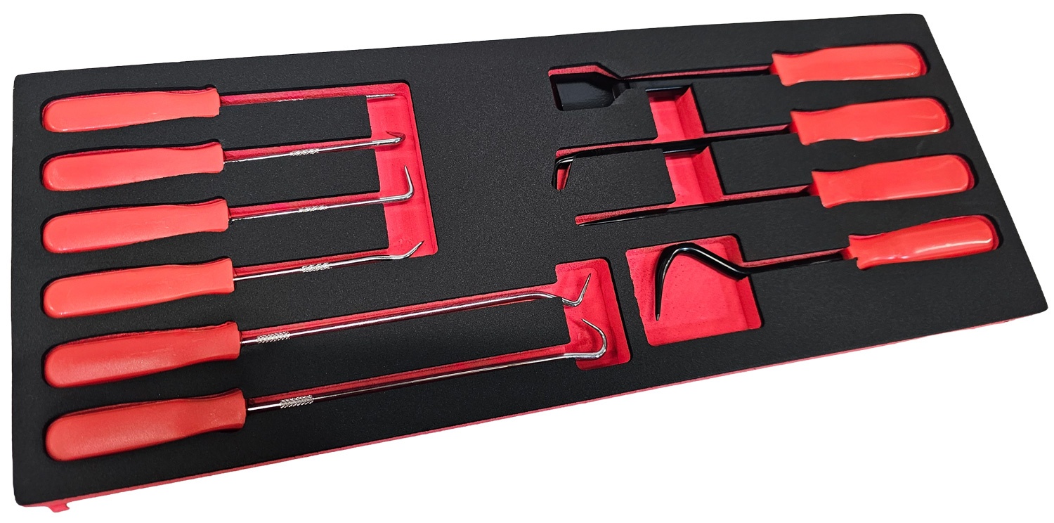 Scraper, hook and pick set suitable for a variety of jobs in the automotive industry and the workshop. hardened and tempered with a black phosphate finish, Fitted with plastic handles.