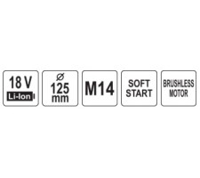 Akumuliatorinis kampinis šlifuoklis be baterijos | 18V | 125 mm (YT-828253)