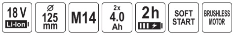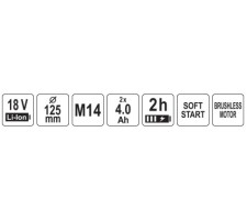 Akumuliatorinis kampinis šlifuoklis su 2 x 4Ah baterijomis | 18V | 125 mm (YT-828252)