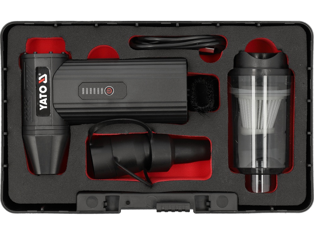 The use of a package of 7.2 V lithium-ion batteries with a capacity of 4000 mAh ensures longer working time and stable blowing parameters. The three-stage rotation adjustment allows for matching the blowing force to the type of cleaned element – from delicate electronics to mechanical parts. The device is charged via a USB-C port. The set includes accessories for precise blowing, a vacuuming nozzle, and a carrying case.