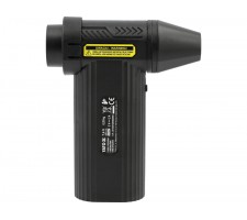 Handy blower equipped with a high-speed turbo fan designed for cleaning and blowing out precision parts. The rotor reaches speeds of up to 130,000 rpm, generating a focused stream of air that allows for removing dirt from hard-to-reach areas without any mechanical contact with the cleaned surface. The airflow applied to a kitchen scale weighs it down with a force of up to 170 grams.