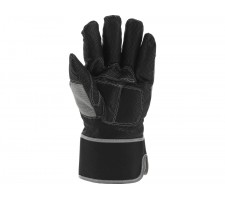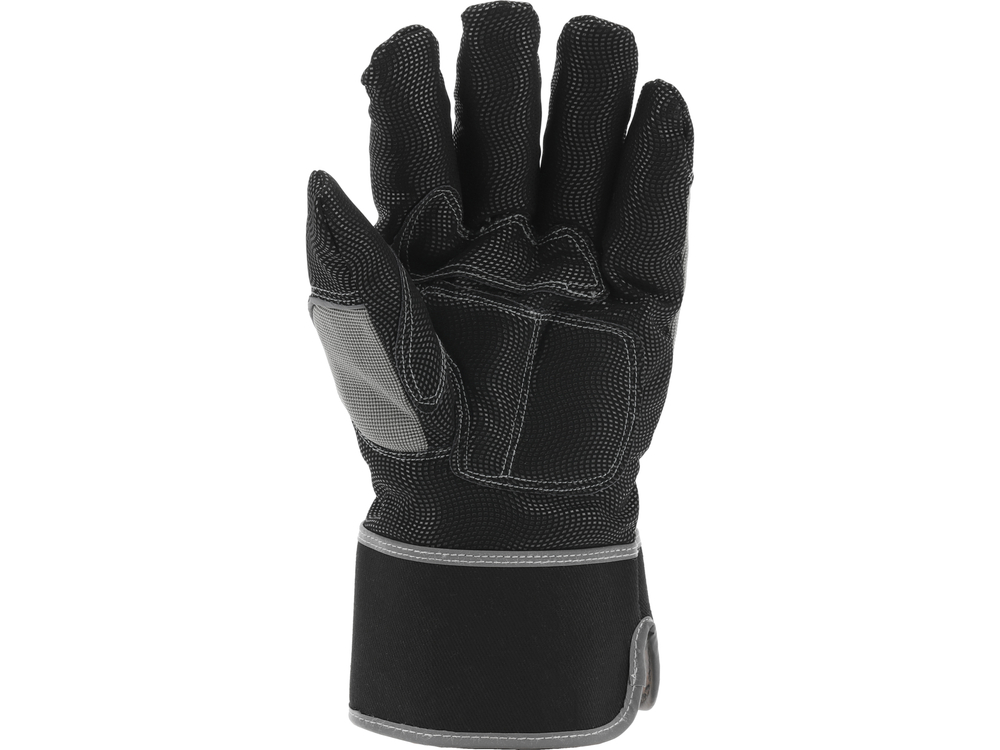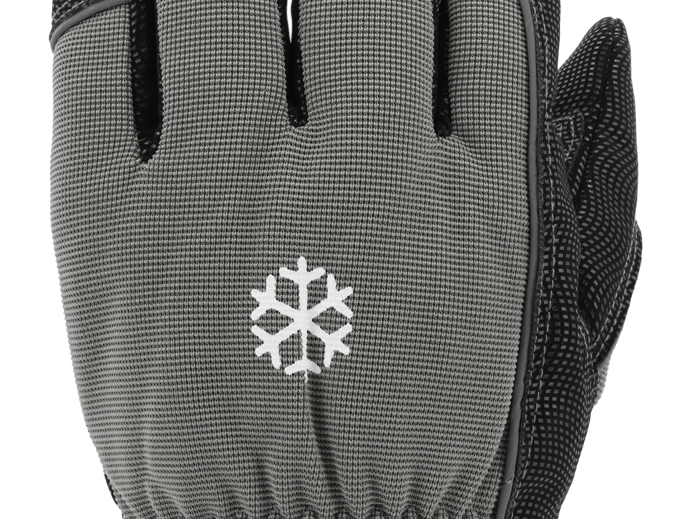 Reinforced, insulated work gloves. The gripping part is made of the latest generation of synthetic leather resembling nubuck, with a wavy pattern with anti-slip properties. The addition of elastane gives the material stretch, significantly improving comfort during use. They will be suitable for construction, cleaning work, carrying dirty elements, as well as for tasks requiring high precision in grip.