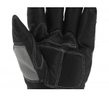 Reinforced, insulated work gloves. The gripping part is made of the latest generation of synthetic leather resembling nubuck, with a wavy pattern with anti-slip properties. The addition of elastane gives the material stretch, significantly improving comfort during use. They will be suitable for construction, cleaning work, carrying dirty elements, as well as for tasks requiring high precision in grip.