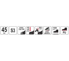 steel toe cap resistant to impact with energy up to 200 J and compression up to 15 kN