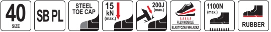 impact-resistant steel toe cap with energy up to 200 J and compression up to 15 kN