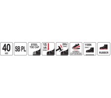 Protection against sole puncture is provided by a flexible, 4 mm thick protective insert made of material used to produce bulletproof vests. The toes are protected by a strong impact-resistant steel toe cap.