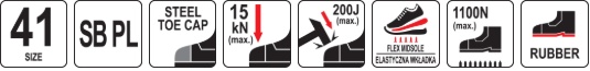 steel toecap resistant to impacts with an energy of up to 200 J and crushing up to 15 kN