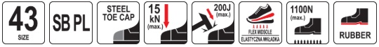 impact-resistant steel toe cap with energy up to 200 J and compression up to 15 kN