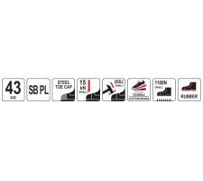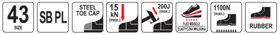Protection against sole penetration is guaranteed by a flexible protective insole made from the material used in the production of bulletproof vests, with a thickness of up to 4 mm. The toes are protected by a strong impact-resistant steel toe cap.