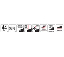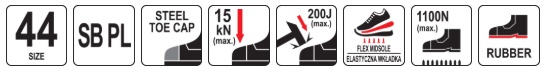 Protection against sole penetration is guaranteed by a flexible protective insole made from the material used in the production of bulletproof vests, with a thickness of up to 4 mm. The toes are protected by a strong impact-resistant steel toe cap.
