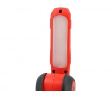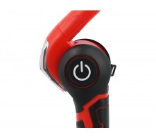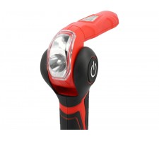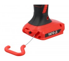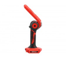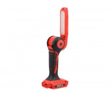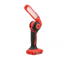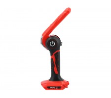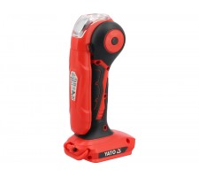 The YATO 18 V rechargeable flashlight is a mobile light source designed for illuminating workstations, technical interiors, and assembly areas. The battery power eliminates the need for cords, increasing freedom of movement in the workshop, on construction sites, and during service work. The design features two LED panels – one on the top and one on the side – allowing for the adjustment of lighting according to the nature of the tasks performed.