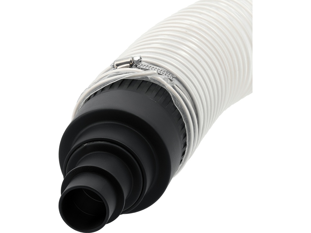 set includes: chip extractor, flexible hose with a diameter of 100 mm, 2 hose ends, filter, filter bag, adapter for power tool connection
