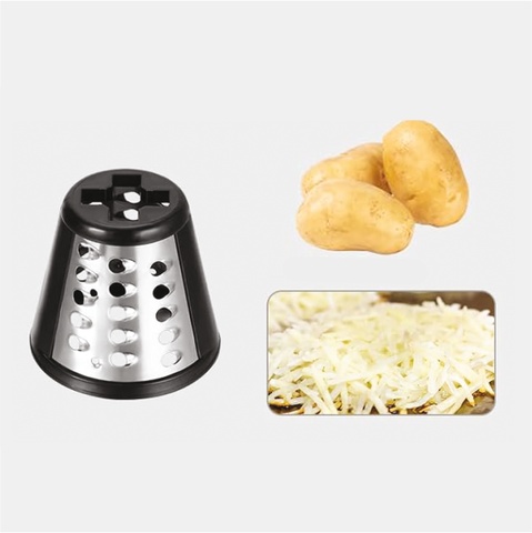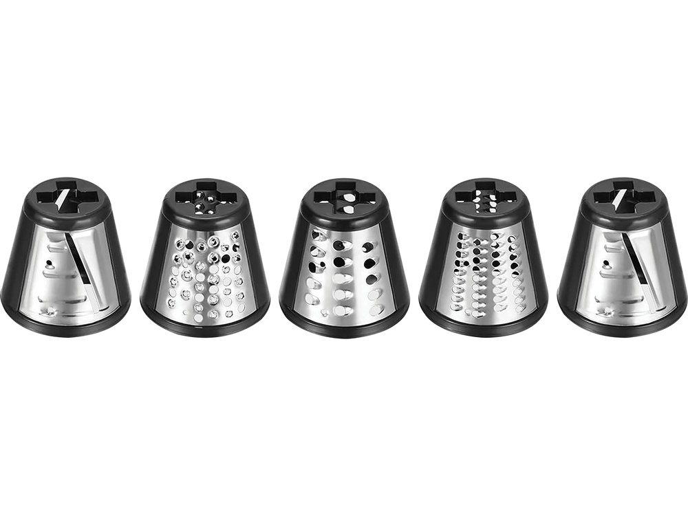 Comes with 5 interchangeable drums with stainless steel blades for precise slicing of vegetables into slices or shavings of various sizes
