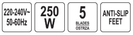 Elektrinė daržovių, vaisių trintuvė / pjaustyklė 250W, 5 peiliai (67830)