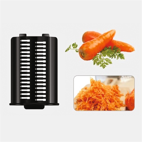 durable drum with 5 interchangeable stainless steel blades precisely slices vegetables into slices or shavings of various sizes
