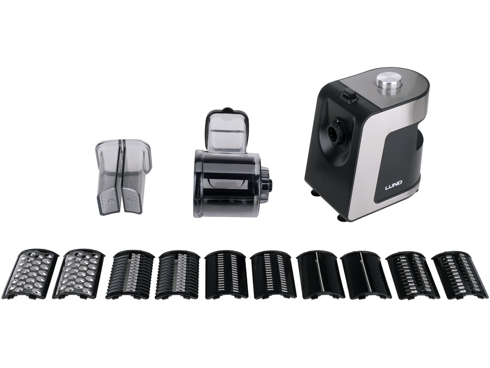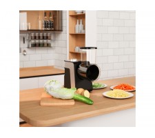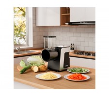 An electric 250 W slicer is a practical helper in the kitchen, allowing you to prepare ingredients for your favorite dishes in just a few moments. It efficiently slices vegetables into smooth or serrated slices, as well as into shavings, making it easy to create a colorful salad, coleslaw, or a base for main courses.
