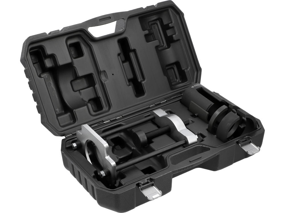Control arm bushing puller for Ford and Volvo cars. Allows disassembly and assembly of bushes in a safe and effective manner, minimizing the risk of damage.