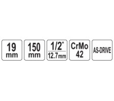 Galvutė smūginė ilga plonasienė prailginta | 150 mm | su plastikine apsauga | 12,7 mm (1/2") | 19 mm (YT-10592)