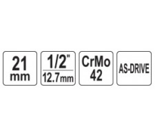 Galvutė smūginė ilga plonasienė | su plastikine apsauga | 12,7 mm (1/2") | 21 mm (YT-10587)