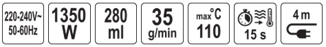 maximum steam temperature: 110˚C