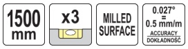 Gulsčiukas aliuminis | BOX level | 1500 mm | su rankenėlėmis | 3 akutės (YT-30115)