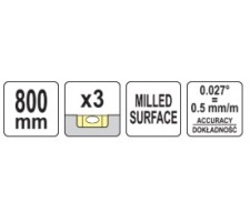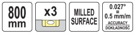 Gulsčiukas aliuminis | BOX level | 800 mm | su rankenėlėmis | 3 akutės (YT-30082)