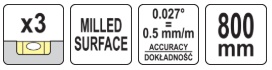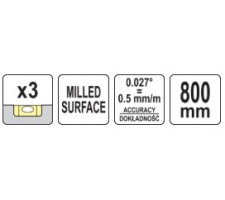 Gulsčiukas aliuminis | BOX level | 800 mm | su rankenėlėmis | 3 akutės (YT-30112)