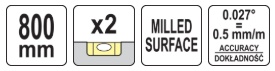 Gulsčiukas aliuminis | BOX level | 800 mm | su rankenėlėmis (YT-30102)