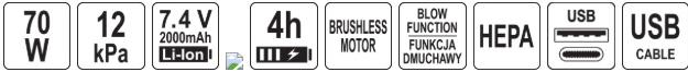 Light and portable cordless vacuum cleaner with a blower function is a practical device for everyday tasks. Thanks to the 70 W BLDC brushless motor, it provides stable and efficient operation, while remaining quiet and energy efficient.