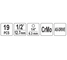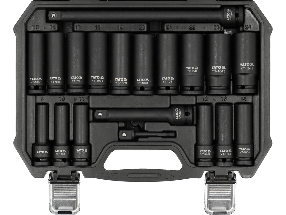 Ilgų smūginių galvučių rinkinys 1/2" | 8-24 mm | 19 vnt (YT-10556)