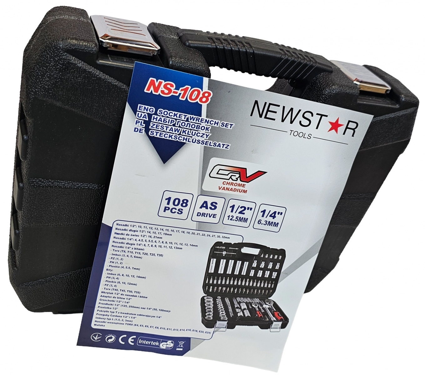 Įrankių rinkinys | Cr-V | 72z | 6.3 mm (1/4") + 12.5 mm (1/2") | 108 vnt. (SK108)