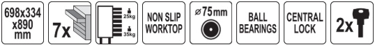 overall dimensions 698 x 334 x 890 mm allow for storing necessary tools and optimizing space in the workshop