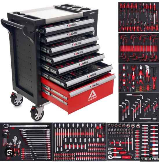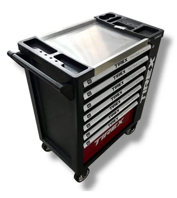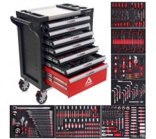 Įrankių spintelė ant ratukų | metalinis starviršis | su įrankiais | 7 stalčiai / 1 durelės | 298 įrankiai (H7002)