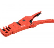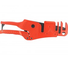 Installation duct scissors designed for precise cutting of cable channels made of plastics without the risk of cracks and edge deformation. The construction allows for quick adaptation of electrical and telecommunications installation elements without the need to use saws or grinders. The lightweight body made of aluminum alloy combined with a stainless steel blade ensures smooth operation and good pressure control during cutting.