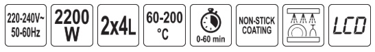 Karšto oro gruzdintuvė | 2200W | 4L + 4L (67563)