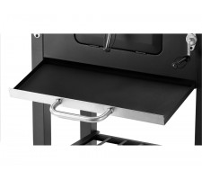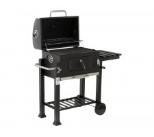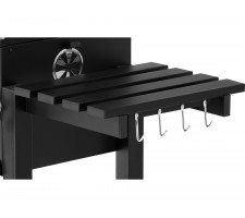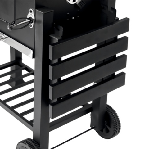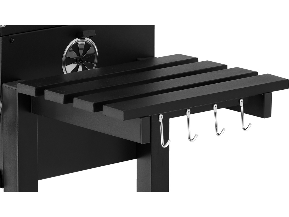 practical shelves and handles - a folding side shelf will serve as a work surface, and the lower shelf will hold charcoal, dishes, or grill accessories. Steel handles allow for convenient hanging of tongs or a spatula and operating the grill.