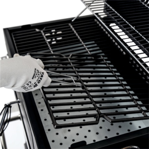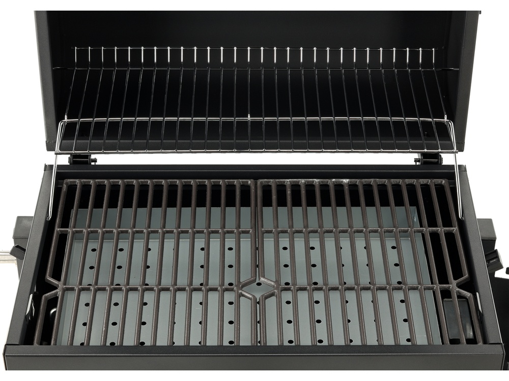 large grilling surface - a cast iron grate measuring 54 x 37 cm and 3 mm thick ensures even heat distribution and proper temperature maintenance. An additional warming rack measuring 54 x 24 cm allows for storing ready-made dishes or gently warming without the risk of burning.