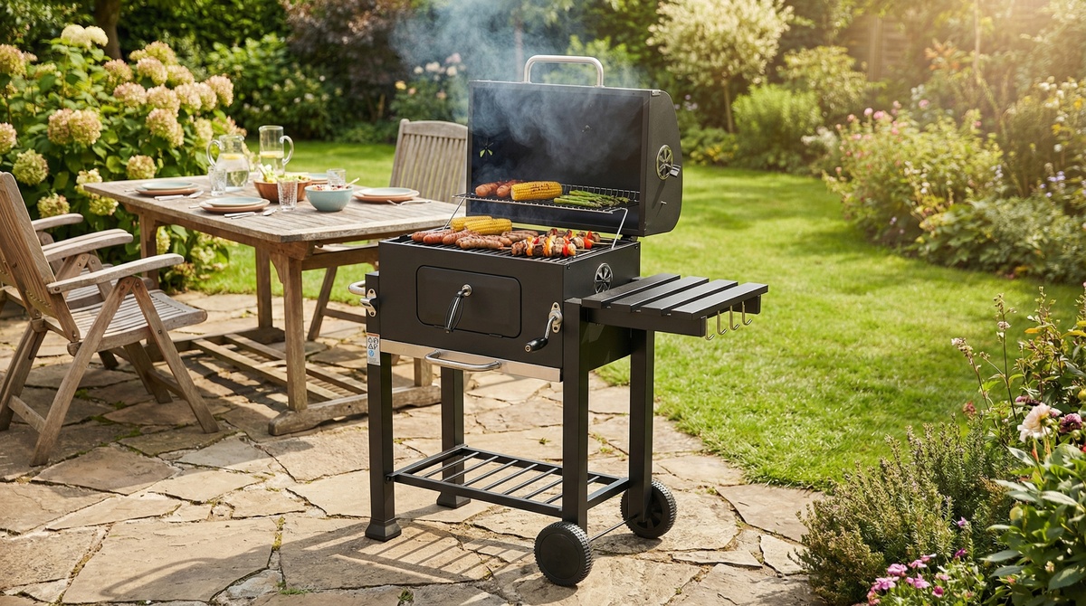 The portable charcoal grill has been designed with users in mind who expect solid construction and control over every stage of food preparation. The closing lid, air flow adjustment, and the possibility of setting the grill grate height allow for precise temperature adjustment for different types of grilled dishes. Well-thought-out shelf layout and work elements increase work comfort, and the mobile design makes the grill suitable for use in the garden, on the terrace, and during seasonal outdoor gatherings.