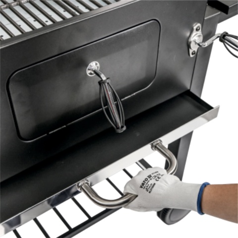 temperature and air circulation control - the grill is equipped with ventilation dampers - a damper at the bottom of the firebox and a ventilation hole in the lid. They allow for precise control of air flow and, consequently, the intensity of the heat. The built-in thermometer facilitates real-time temperature control without the need to lift the lid.