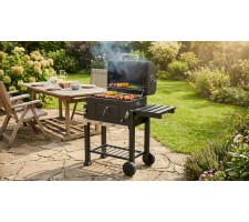 mobility - two large wheels and a side transport handle allow for easy repositioning of the grill within the terrace, garden, or plot.