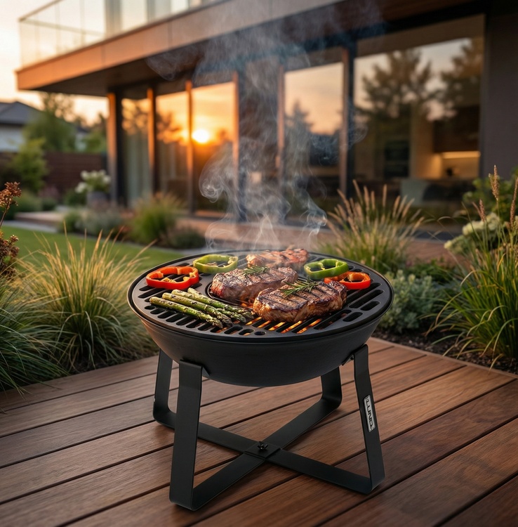 The simple, stable construction made of durable cast iron makes the product withstand high temperatures well and retains heat for a long time, which promotes even cooking of dishes and stable burning of wood. This is a solution that works well both during weekend grilling and quiet evenings by the fire.