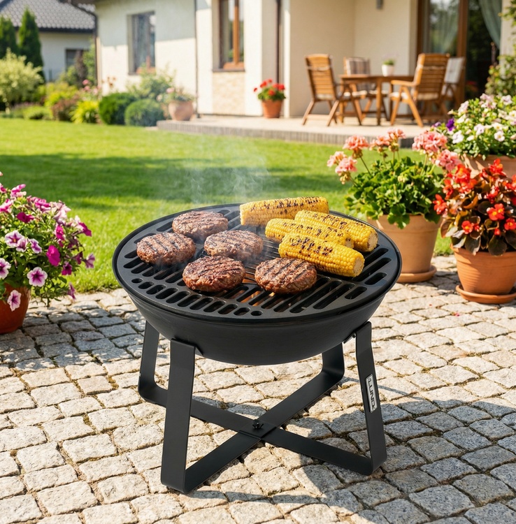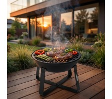 The cast iron garden fire pit with grilling function is a versatile 2 in 1 solution, combining the possibility of preparing delicious dishes outdoors with the comfort of safely igniting a fire. The 50 cm diameter allows you to comfortably arrange portions for several people at the same time, while the height of 36 cm makes it easier to add fuel and control the embers without bending over. The set also includes a poker, so you can start using it right away.