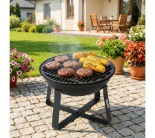 two functions - the design allows you to use the product for grilling dishes and as a fire pit, allowing you to light an open fire providing warmth and atmosphere during outdoor gatherings
