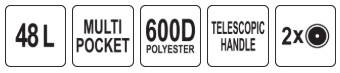 Kuprinė 370x230x570 mm | su ratukais | teleskopinė rankena | kietas pagrindas (YT-74288)