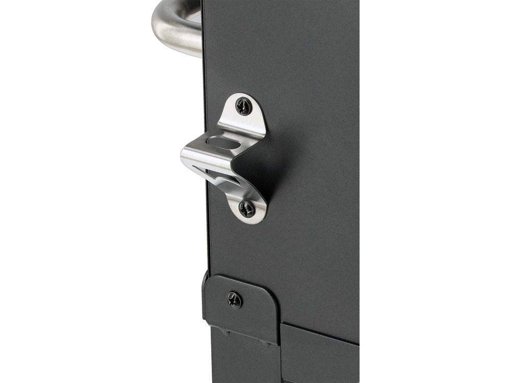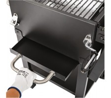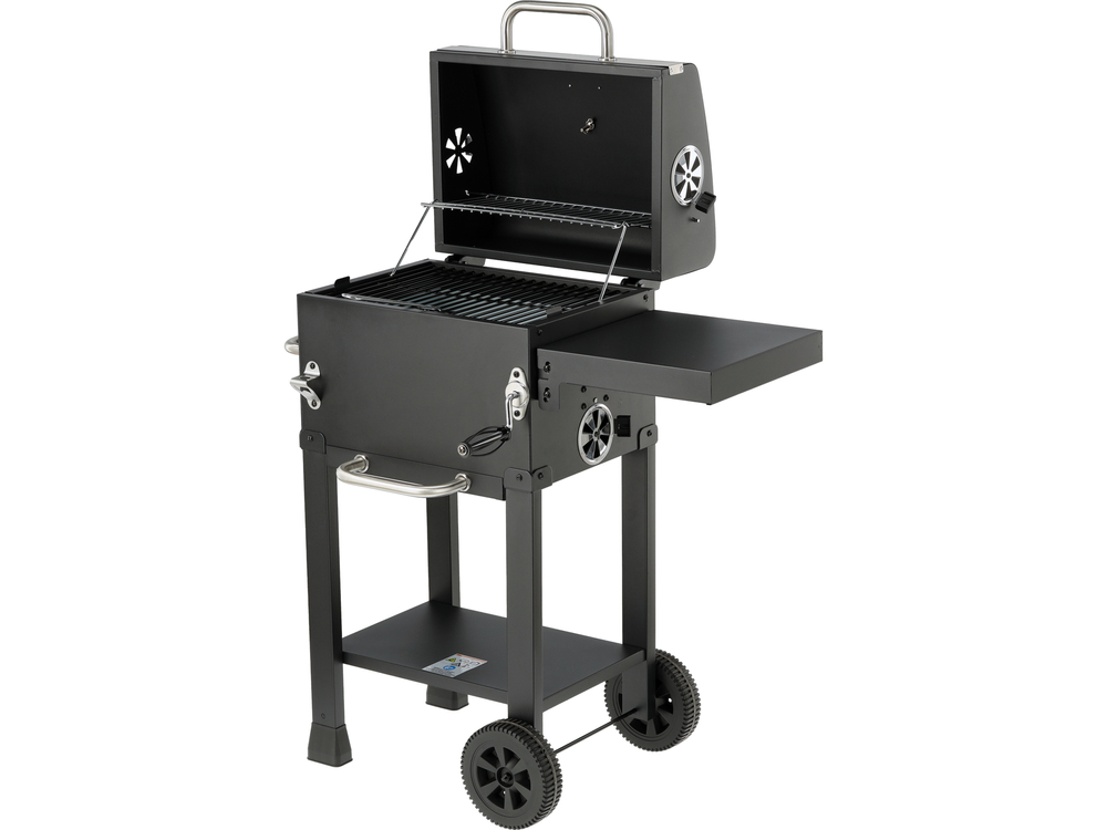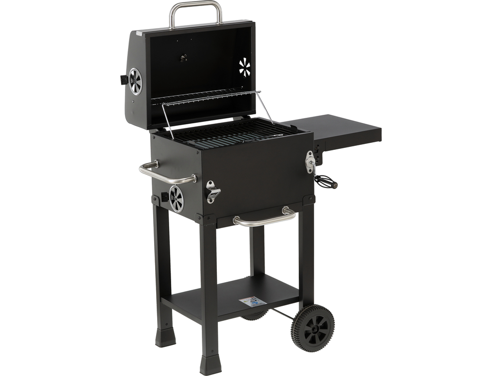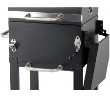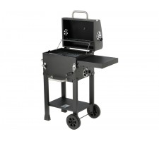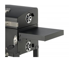 Practical shelves and handles - a folding side shelf serves as a worktop, and the lower shelf can hold charcoal, dishes, or grill accessories. Steel handles allow you to conveniently hang tongs or a spatula and operate the grill.