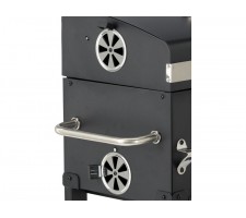 Temperature and airflow regulation - the grill is equipped with ventilation flaps - a damper at the bottom of the firebox and a ventilation hole in the lid. These allow for precise control of airflow and, consequently, the intensity of the heat. The built-in thermometer facilitates real-time temperature monitoring without the need to lift the lid.