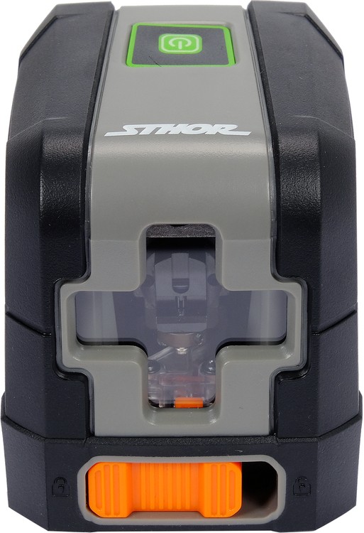 The cross line laser emits clearly visible green lines.